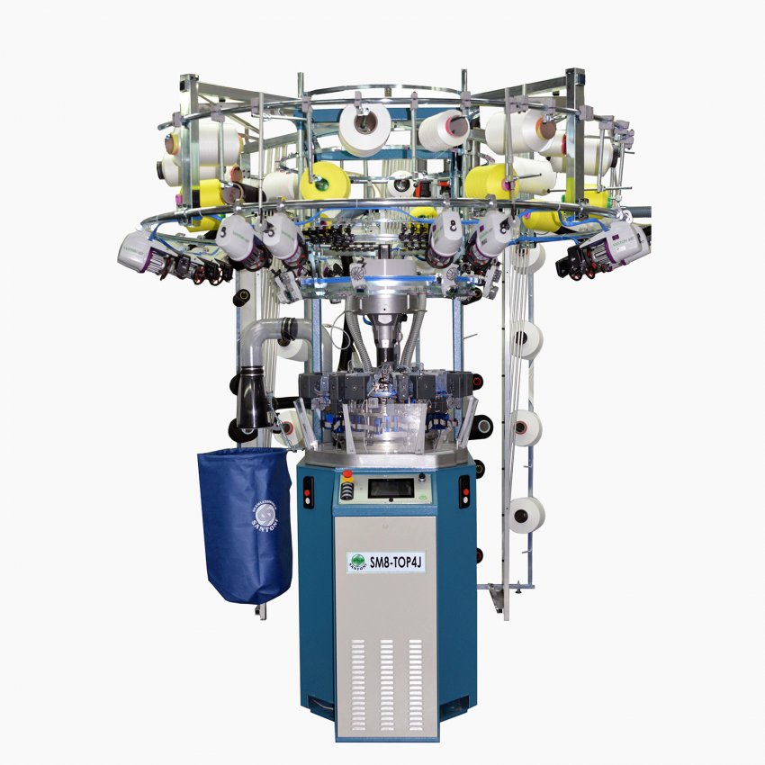 Single Jersey electronical circular machine with 8 feeds, with 4 points of selection needle by needle on each feed. For the production of single seamless garments for underwear, outerwear, beachwear, sportswear, sanitarywear with possibility of different stitch structures and colors on the same course. Terry possibility on request.