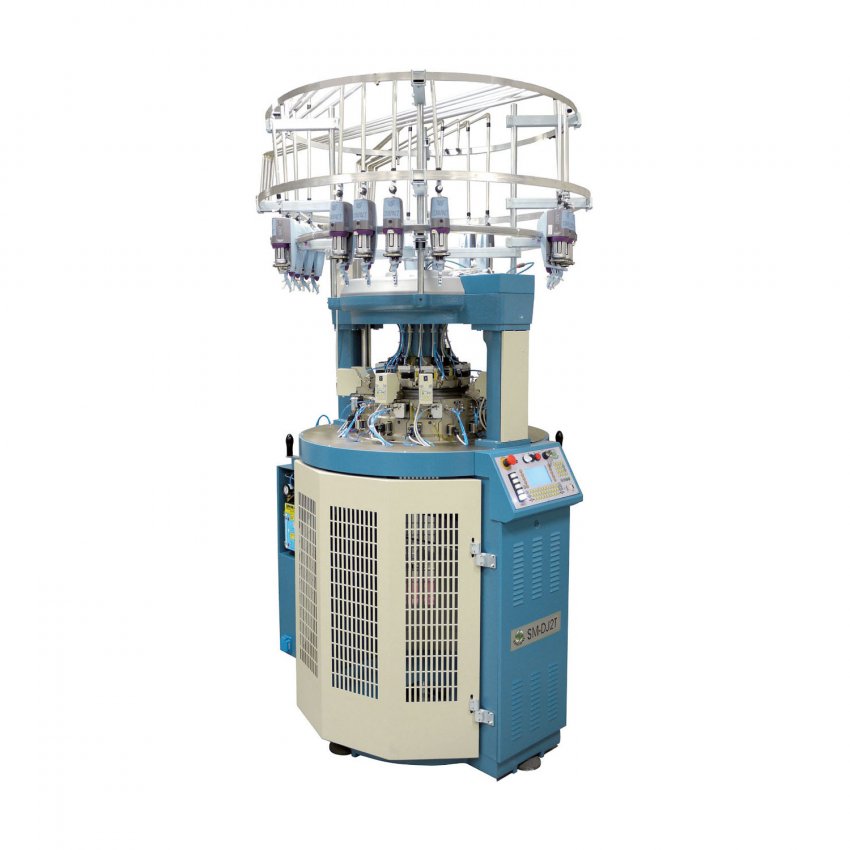 Double knit electronical circular knitting machine for rib knitting with 2 selection points on cylinder and dial on each feed, for the production of seamless garments for underwear, outerwear, sportswear, beachwear and sanitarywear in continuous tubular fabric and/or separated pieces having single welt and separation yarn. It is possible to knit all different types of rib as well as links structures due to the availability of one needle-by-needle selection in cylinder and dial.