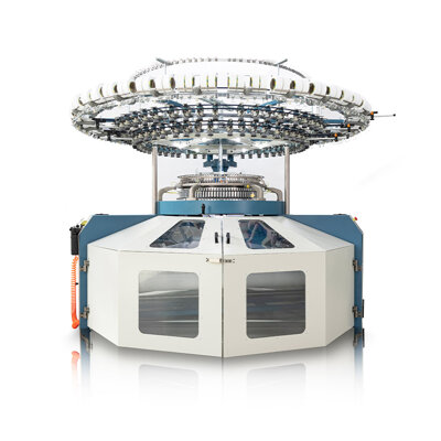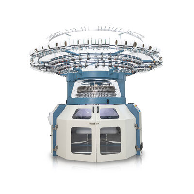 Gamma completa di macchine circolari di grande diametro per la produzione di tessuti a maglia monofrontura e doppiafrontura. Include la macchina con tecnologia senza platine ATLAS disponibile in finezze standard ed ultrasottili (fino a finezza 80).